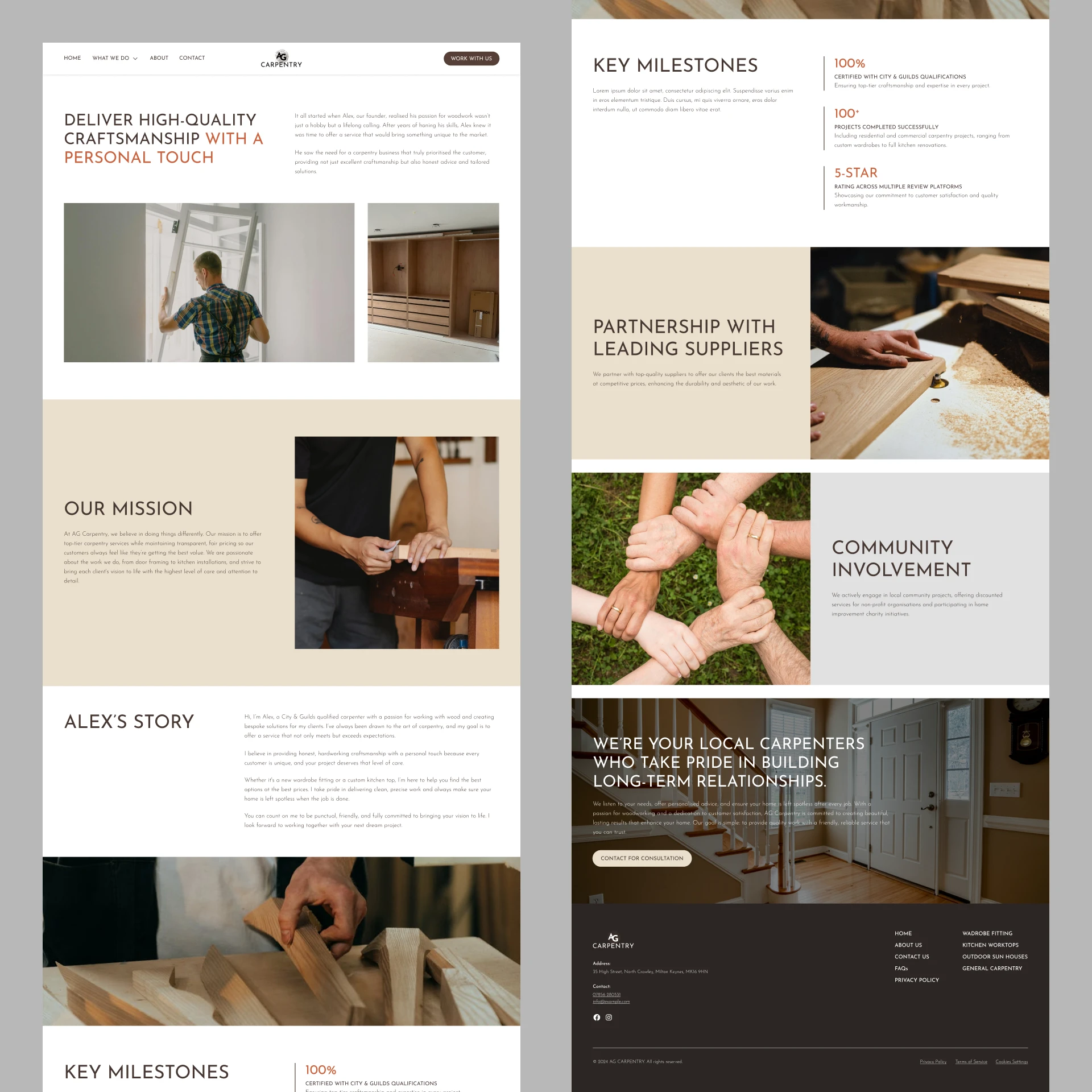 We designed a clean, approachable website that reflects the reliability and straightforward nature of AG Carpentry’s work, focusing on clarity, trust, and ease of navigation. We then built the site on WordPress using Elementor, ensuring it was easy to maintain and scalable as the business grows. From layout to language, every detail was shaped to feel clear and credible. The result is a grounded digital presence that helps AG Carpentry connect with more clients and present their services with confidence.