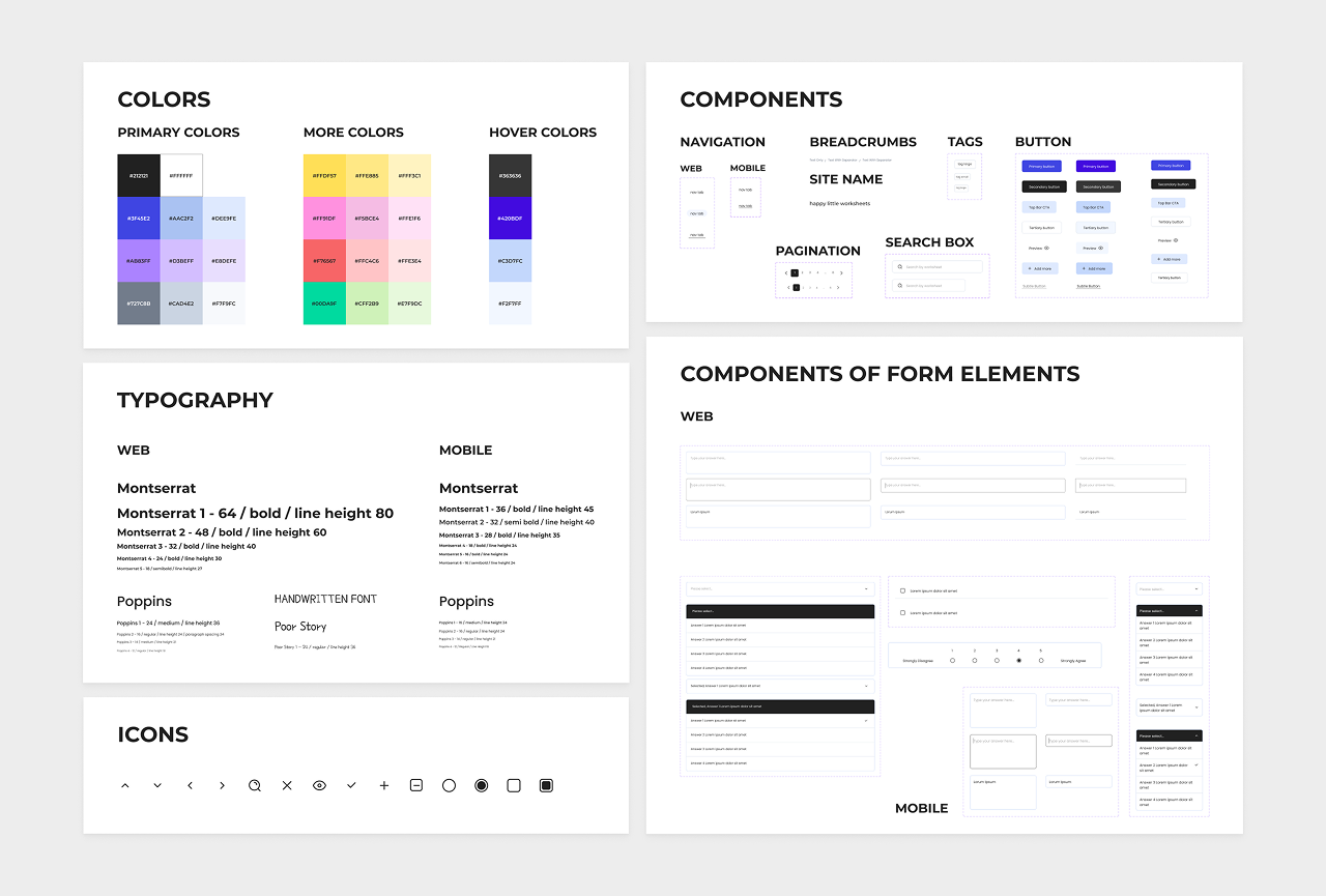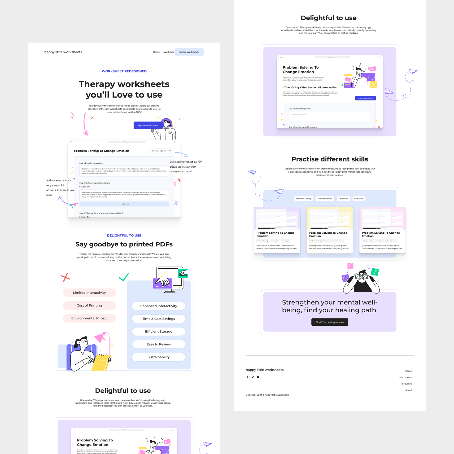 Happy Little Worksheets provides therapist-created digital worksheets to support emotional wellbeing across all age groups. The platform needed a brand and interface that felt playful yet grounded—one that could connect with mental health professionals and everyday users alike.