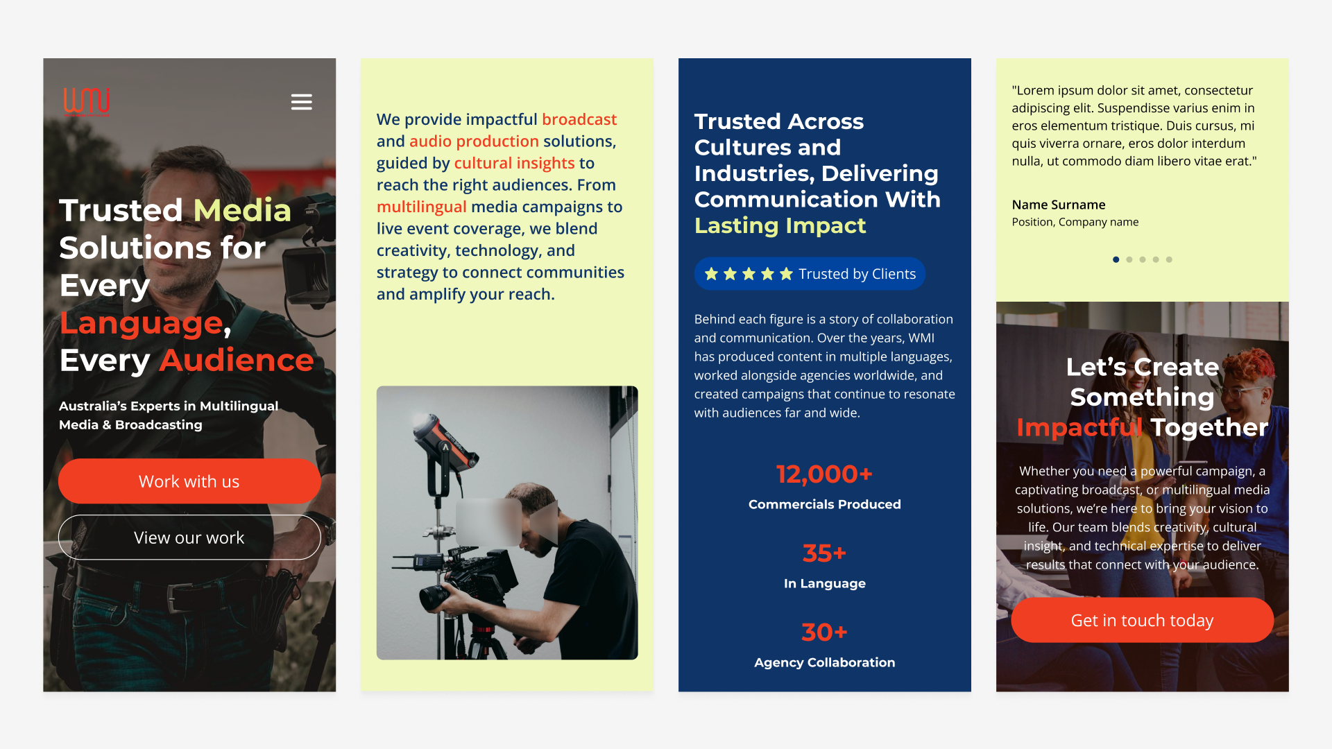 WMI produces meaningful multilingual media for government and commercial organisations, helping them communicate clearly with community audiences. Their previous site no longer reflected the quality and impact of their work, especially their strong focus on video storytelling.